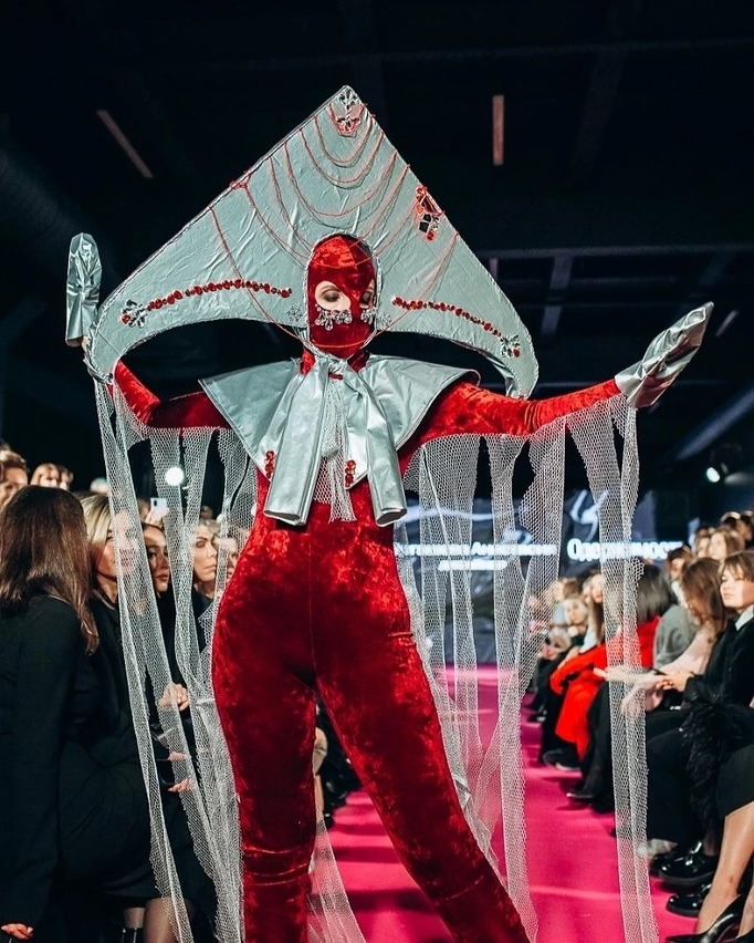 Una cantidad grande de amuletos y pañuelos acolchados nos vuelven en el cuento eslavo, guardando el código nacional eslavo en la moda moderna,”- cuenta Anastasia sobre su colección.